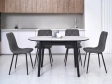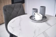 Стіл має овальну форму та виготовлений з матової кераміки і матового МДФ, що надає йому елегантного вигляду та легкості у догляді. Він також оснащений автоматичним механізмом розкладки, який дозволяє змінювати його довжину зі 110 см до максимальних 140 см всього за кілька секунд. Це робить його ідеальним для прийому гостей або сімейних обідів.