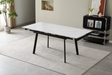 Завдяки боковому механізму розкладання стіл легко трансформується з 120 до 180 см, забезпечуючи достатньо місця для щоденного використання або святкових застіль у колі близьких. Стільниця з глянцевої кераміки вирізняється стійкістю до високих температур, що робить її практичною та довговічною. Міцна металева основа гарантує надійність конструкції та стабільність у щоденному користуванні.