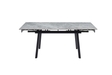 Завдяки боковому механізму розкладання стіл легко трансформується з 120 до 180 см, забезпечуючи комфортне розміщення гостей як у повсякденному житті, так і під час святкових подій. Глянцева керамічна стільниця стійка до високих температур, а міцна металева конструкція гарантує надійність і довговічність.