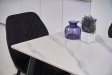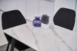 Колір білий мармур на стільниці створює елегантний вигляд, імітуючи натуральний мармур з його характерними прожилками. Чорні ніжки надають сучасного і контрастного акценту, який гармонійно доповнює загальний вигляд столу, створюючи стильний і завершений образ.