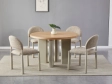 Кругла стільниця діаметром 120 см виготовлена зі шпонованого МДФ у відтінку “ясень”, що додає виробу природного шарму та тепла.